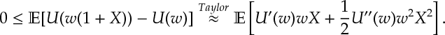 Ans 2. Accept if ![0 \leq \bE [U(w(1+ X)) - U(w)] \stackrel{\tiny{Taylor}}{\approx} \bE \left[U'(w) w X + \frac{1}{2} U''(w) w^2 X^2 \right].](https://appliedprobability.blog/wp-content/uploads/2017/04/43876e3b9e125cb07dbaf10c8800e662.png?w=840)