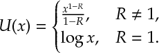 Def 5 [CRRA Utility/ [Util:CRRA] A Constant Relative Risk Averse utility (CRRA) takes the form
