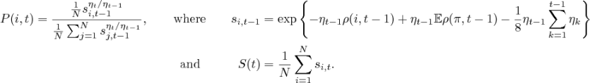 For parameter , the \emph{(exponentially) weighted majority algorithm} is a randomized policy which chooses a policy $\latex i=1,…,N$ at time