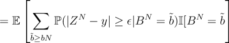 ![= {\mathbb E} \left[ \sum_{\tilde{b} \geq b N} {\mathbb P} ( | Z^N -y| \geq \epsilon | B^N = \tilde{b} ) {\mathbb I} [B^N =\tilde{b} \right]](https://appliedprobability.blog/wp-content/uploads/2017/07/312440d59bb9fe47f58c1ee2bd27317e.png?w=840)