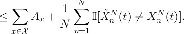![\leq \sum_{x\in{\mathcal X}} A_x + \frac{1}{N}\sum_{n=1}^N {\mathbb I} [ \tilde{X}^N_n(t) \neq X^N_n(t) ] .\label{MF:last}](https://appliedprobability.blog/wp-content/uploads/2017/07/542034029537714055e9c5f4391a052a.png?w=840)