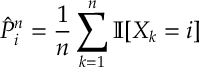 ![\hat{P}^{n}_{i} = \frac{1}{n} \sum_{k=1}^{n} {\mathbb I}[X_k=i]](https://appliedprobability.blog/wp-content/uploads/2017/07/30c54dd1db82350762ba989feb1acb6c.png?w=840)