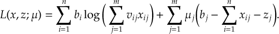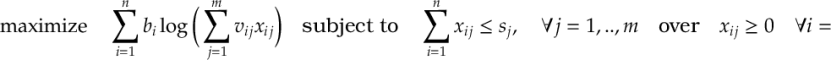 It is a concave optimization and so its solution can be found by the method of Lagrange. Its Lagrangian is
