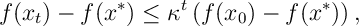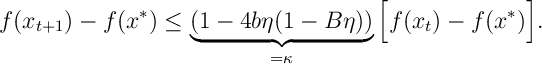 ![f(x_{t+1}) - f(x^*) \leq \underbrace{(1- 4b\eta (1-B \eta))}_{=\kappa} \Big[ f(x_{t}) - f(x^*) \Big].](https://appliedprobability.blog/wp-content/uploads/2017/07/19e97e15847b9701f6e8f421909e93e1.png?w=840)