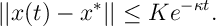 This gives exponential convergence in and quick application of the bound in the 2nd assumption gives