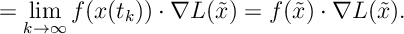 <img class=” aligncenter” title=”\frac{d L(x(t))}{dt} = f(x(t))\cdot \nabla L(x(t))