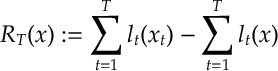 The quantity that we are interested in minimizing is the regret of the aggregate loss between a sequence of choices , and a fixed choice
