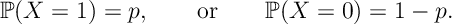 Def [Bernoulli Random Variable] A random variable that takes at most two values is called a Bernoulli random variable. We assume (unless stated otherwise) that these values are zero or one. So