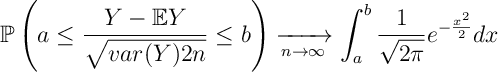 ![\mathbb{P} \left( a \leq \frac{ Y - \mathbb{E} Y }{ \sqrt{var(Y) 2n} } \leq b \right) \xrightarrow[n\rightarrow \infty]{} \int_{a}^{b} \frac{1}{\sqrt{2\pi}} e^{ - \frac{x^2}{2} } dx](https://appliedprobability.blog/wp-content/uploads/2017/07/6554a0a4f28895415f8a1d8388323ef6.png?w=840)