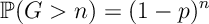 Def [Geometric Distribution] A RV has Geometric Distribution, and we write