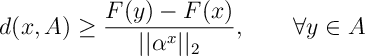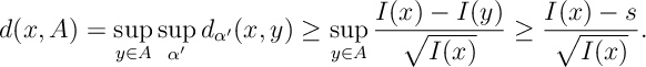 ![\begin{aligned} d(x,A)&= \sup_{\substack{\alpha\in\bR_+^n\\ ||\alpha||_2\leq 1}} \inf_{y\in A} \sum_{k=1}^n \alpha_k \bI[x_k\neq y_k]= \inf_{v\in < V(x,A)>} ||v||_2 \end{aligned}](https://appliedprobability.blog/wp-content/uploads/2017/09/0bc45f0af82c4acb5364fa036a44e720.png?w=840)