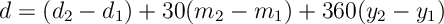 Def [Exact number of days] The exact number of days between two dates is the number days from the first given date to the second (excluding the first or last date)