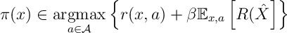 ![\pi(x) \in \argmax_{a\in \mathcal A} \left\{ r(x,a) + \beta \mathbb E_{x,a} \left[ R(\hat{X} \right] \right\}](https://appliedprobability.blog/wp-content/uploads/2018/02/7b86e424f2ac6990d8fa45ac839e254e.png?w=840)