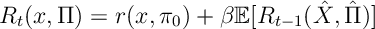 ![R_t(x,\Pi) = r(x,\pi_0) + \beta \mathbb E [ R_{t-1}(\hat{X},\hat{ \Pi} ) ]](https://appliedprobability.blog/wp-content/uploads/2018/02/c70dcd06f2d37a59d953b15c63e9eaf3.png?w=840)