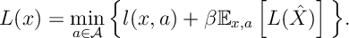 ![L(x) = \min_{a\in {\mathcal A}} \Big\{ l(x,a) + \beta {\mathbb E}_{x,a} \left[ L(\hat{X}) \right] \Big\}.](https://appliedprobability.blog/wp-content/uploads/2018/02/c8c75c9027e6ba9490cc167c6780dcb5.png?w=840)