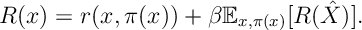 ![R(x) = r(x,\pi(x)) + \beta \mathbb E_{x,\pi(x)} [R(\hat{X})].](https://appliedprobability.blog/wp-content/uploads/2018/02/dee079d732d6184aabdf04657553997d.png?w=840)
