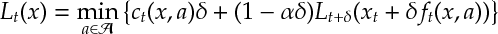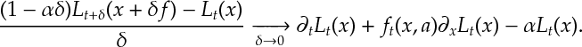 ![\frac{(1-\alpha \delta) L_{t+\delta}(x+\delta f) - L_t(x)}{\delta} \xrightarrow[\delta \rightarrow 0]{ }\partial_t L_t(x) + f_t(x,a)\partial_x L_t(x) - \alpha L_t(x).](https://appliedprobability.blog/wp-content/uploads/2017/04/9f0e0990dfcb5423a08c64d4048fe3d2.png?w=840)