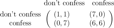 A little more mathematically, if row player does not confess with probability and does confess with probability