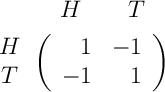 Ex 1. [Matching Pennies] Suppose two players each have a coin, say euro. Without showing their coin to their opponent, each player can choose to place the coin heads up or tails up. The players then reveal their coins to each other. If the coins faces match then the first player wins the coin. If the coins do not match the second player wins the coin. This leads to the game matrix