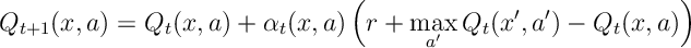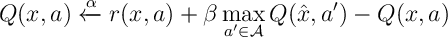 ![Q(x,a) \xleftarrow[]{\alpha} r(x,a) + \beta \max_{a'\in \mathcal A} Q(\hat{x},a') - Q(x,a)](https://appliedprobability.blog/wp-content/uploads/2019/01/f4d330d452b789b8527d8507a8726dd0.png?w=840)