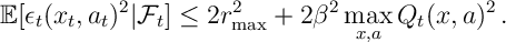 ![\mathbb E [\epsilon_t(x_t,a_t)^2 | \mathcal F_t] \leq 2 r^2_{\max} + 2 \beta^2 \max_{x,a} Q_t(x,a)^2 \, .](https://appliedprobability.blog/wp-content/uploads/2019/01/b51bcbb4acc88fec8f11ee01e5ee5b96.png?w=840)