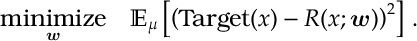 ![\underset{\bm w}{\text{minimize}}\quad \mathbb E_\mu \left[ \left( \text{Target}(x) - R(x;\bm w) \right)^2 \right]\, .](https://appliedprobability.blog/wp-content/uploads/2019/04/1addbd180564f52b54ba473f29c91567.png?w=840)