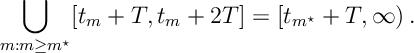 ![\bigcup_{m : m \geq m^\star } [ t_m +T, t_m +2T] = [t_{m^\star} + T,\infty)\, .](https://appliedprobability.blog/wp-content/uploads/2020/02/75ed0bda62659f424fff89a4ed747d3f.png?w=840)