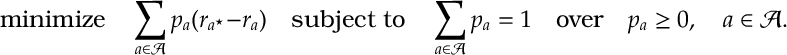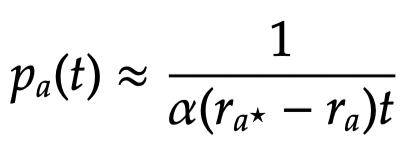 This gives a simple recursion for a multi-arm bandit problem. A name for this is SAMBA: stochastic approximation multi-arm bandit. Catchy acronyms aside, one can see this is really a stochastic gradient descent algorithm with some correction to make sure we don’t get too close to the boundary. Shortly, I’ll argue that we need to let depend on