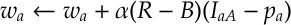 So given the last two expressions, for each arm , you can then perform the following stochastic gradient update: