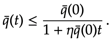 Here we have a positive super-martingale, so by Doob’s Martingale Convergence Theorem converges as time goes to infinity. With a few standard tricks you can show the limit must be zero. We can get a rate of convergence from the discrete time analysis above. Taking expectations and applying Jensen’s inequality one more time gives: