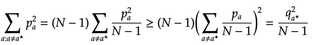 So notice things depend on the probability of playing the optimal arm. Assuming all arms start are equal the optimal arm will increase from