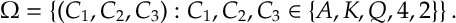 The probability of winning depends on what we mean by “the cards being dealt” and what is means by to “get A,K,Q”.