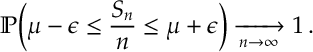\mathbb P\bigg( \mu - \epsilon \leq \frac{S_n}{n} \leq \mu + \epsilon \bigg)