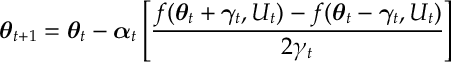 \frac{f(\bm\theta_t+\bm\gamma_t,U_t)-f(\bm\theta_t-\bm\gamma_t,U_t)}{2\gamma_t}