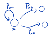 The chain jumps to itself with probability and to another state