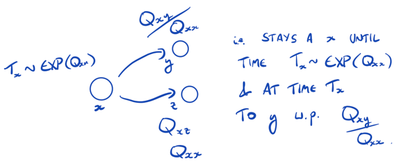 Definition (continuous-time Markov chain). A continuous-time Markov chain is a stochastic process defined by an initial distribution