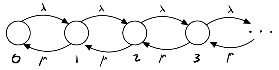 Figure: transition structure of the queue.
